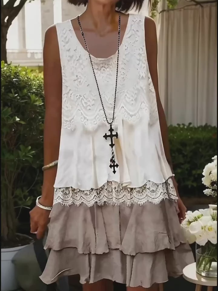 Women's Contrast Lace Spliced Tank Dress